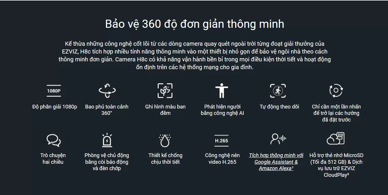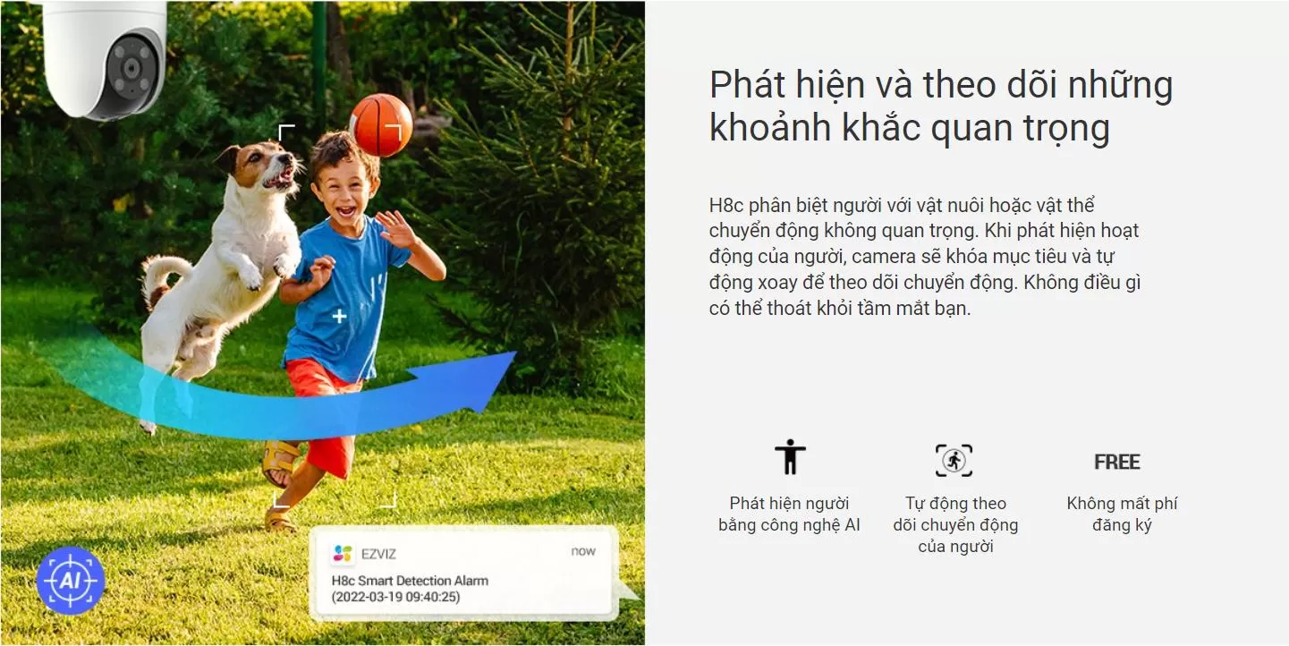 Camera H8c Pro 2K mang đến giải pháp bảo vệ tài sản dễ dàng và hiệu quả hơn bao giờ hết. Dù ngày hay đêm, bạn luôn có được tầm nhìn 2K rõ nét và bao quát 360° cho cả ngôi nhà lẫn doanh nghiệp. Nhờ tính năng phát hiện thông minh và tự động theo dõi, mọi hoạt động quan trọng của con người đều được thông báo kịp thời. Tóm lại, H8c Pro 2K là người bạn đồng hành đáng tin cậy, mang đến sự an tâm trọn vẹn mà không chút phức tạp.