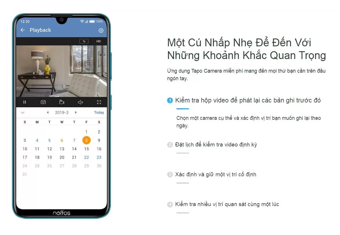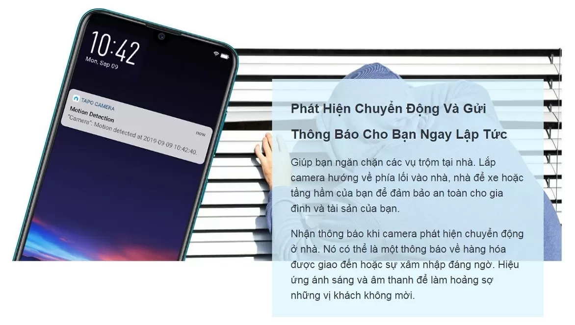Phát Hiện Chuyển Động và Thông Báo : thông báo cho bạn nếu phát hiện điều gì đó đáng ngờ.