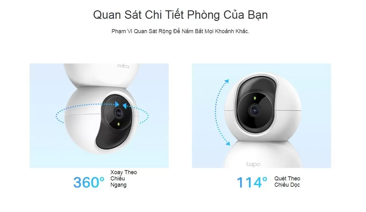 Quay và Quét: 360º theo chiều ngang và 114º theo chiều dọc.