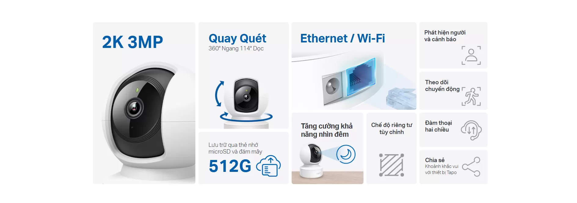 Xoay ngang và dọc: Góc xoay ngang 360° và dọc 114°